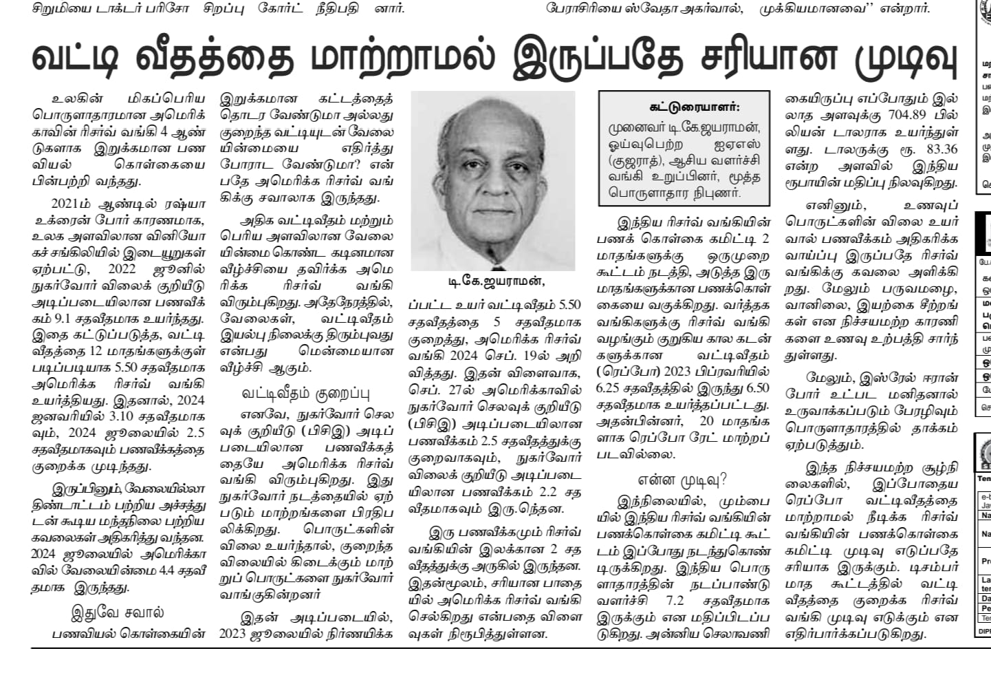 - "ரிசர்வ் வங்கியின் வட்டி விகித கொள்கை மாறுமா ?",