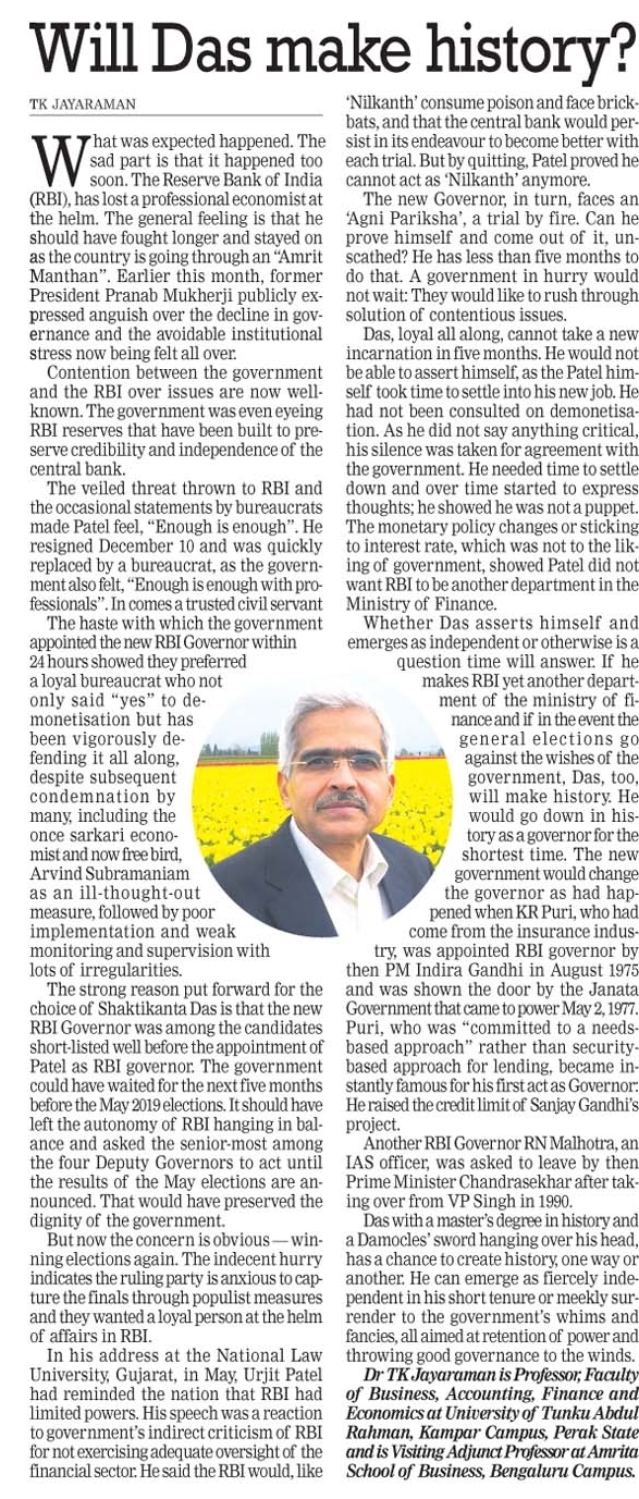 - "Forces behind the falling rupee", Deccan Herald, Jan 11, 2025